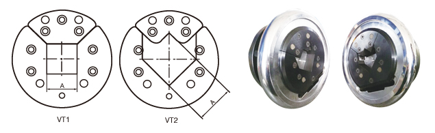 | 安全卡盤可制作成更換托口嵌件的方式,嵌件材料選用特殊鋼材淬火制成,更極大的延長了使用壽命。根據(jù)開口方式的不同,分為VT1型和VT2型。