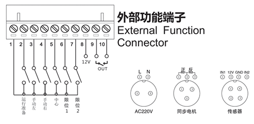 (一)外部接線,連接電源、電機電源線、限位幵關線,按顏色和編號對號接 線。